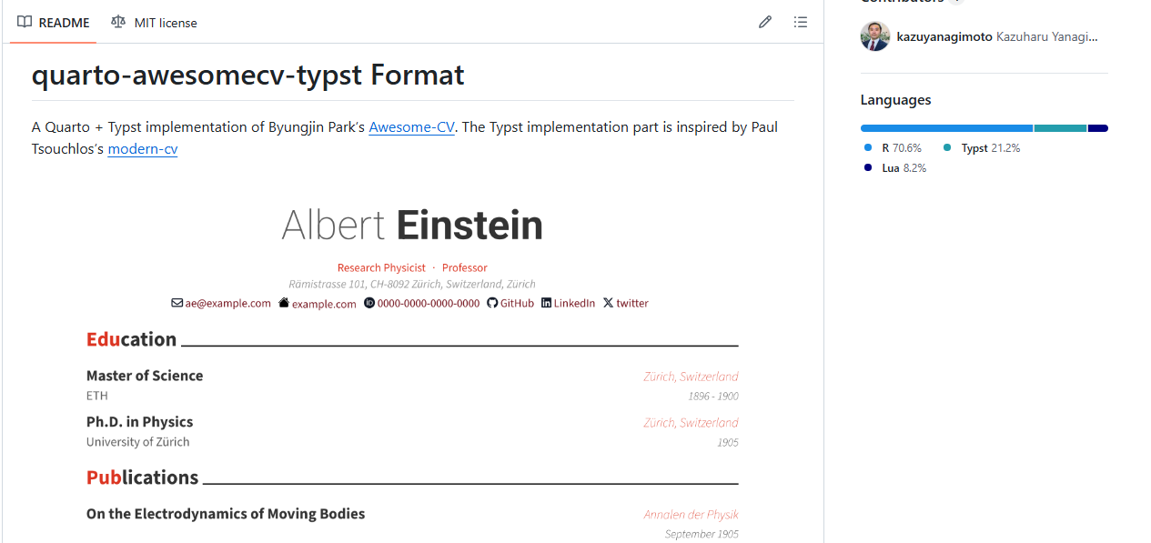 Plantilla de Kazuya Nagimoto — quarto-awesomecv-typst