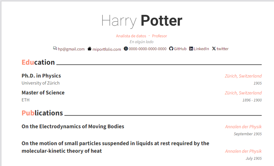 font-header: RobotoSi renderizamos ya podemos ver nuestro CV con los datos personales cargados y nuestro estilo elegido